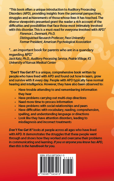 her acquired knowledge on APD with others and co-wrote “Don’t You Get It? Living with Auditory Learning Disabilities.” She also became